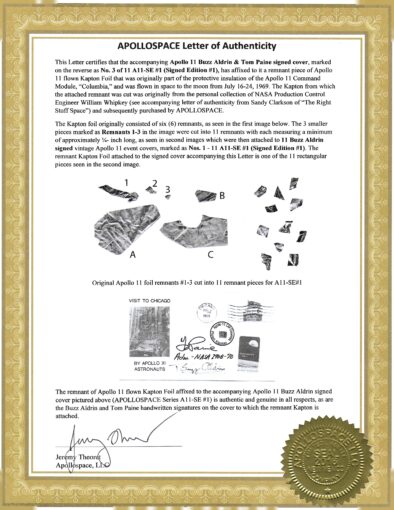 2. Apollo 11 Buzz Aldrin Signed Flown Kapton Foil Cover SE1 #3/11