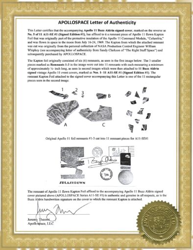 2. Apollo 11 Buzz Aldrin Signed Flown Kapton Foil Cover SE1 #5/11