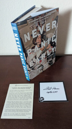 2. Apollo 13 Fred Haise Signed Book Label and Book Never Panic Early