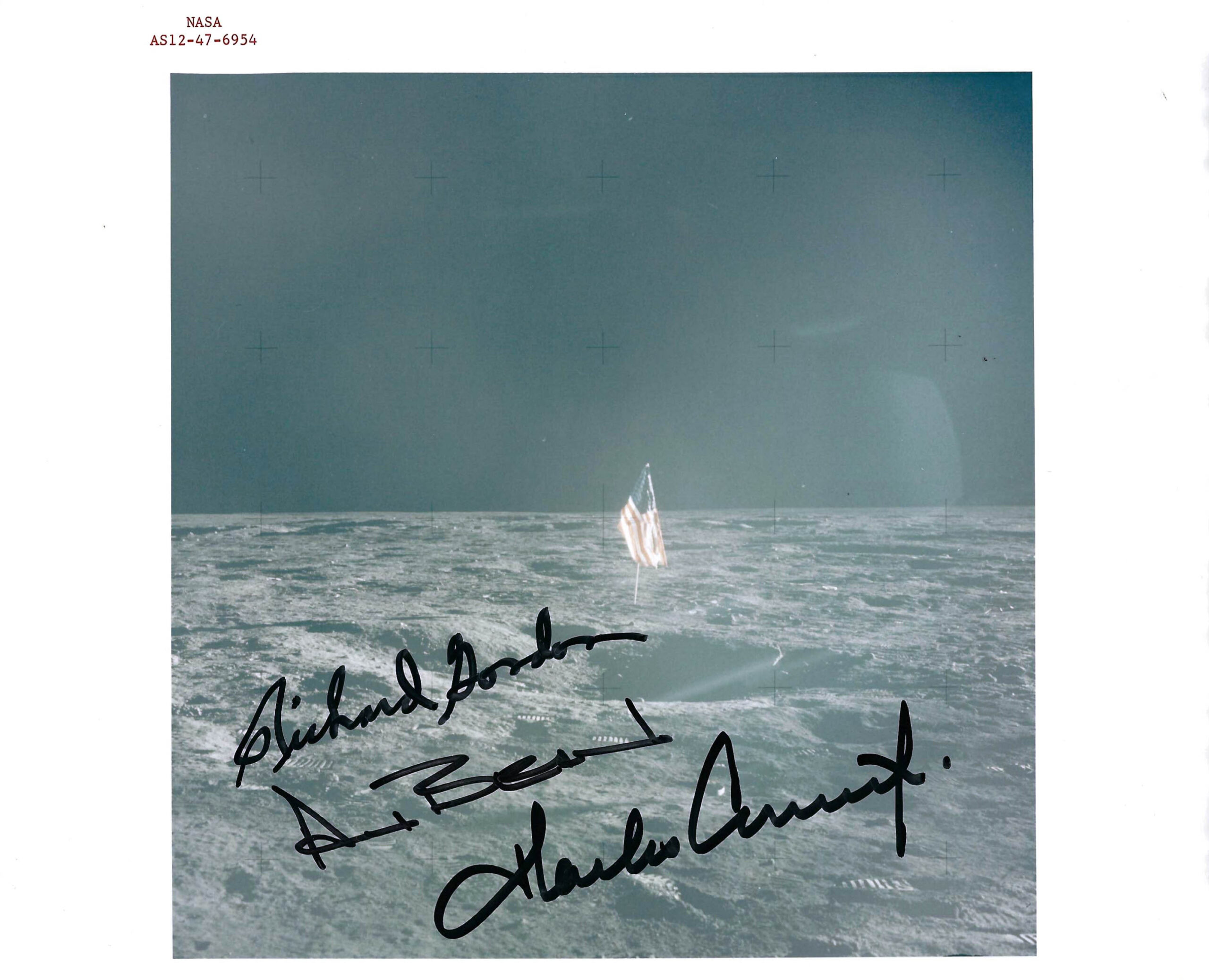 Apollo 12 Crew Signed NASA Red # Photograph of US Flag on Moon
