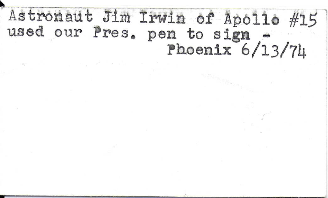 Apollo 15 Moonwalker Jim Irwin signed business card.