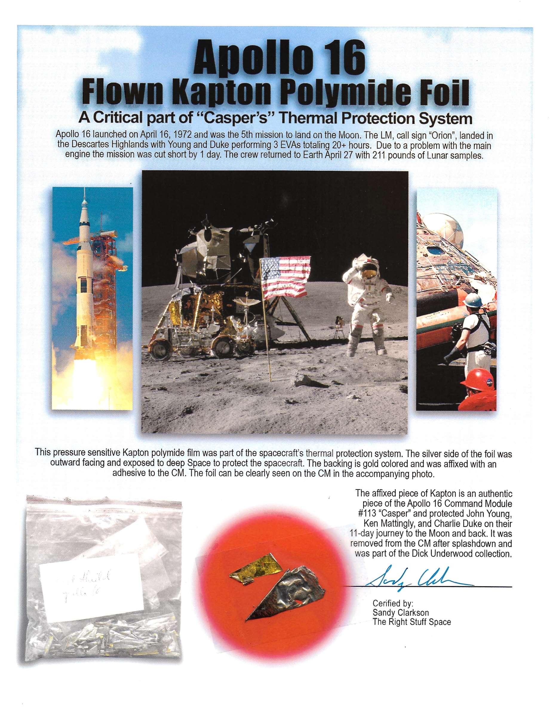 APOLLO 16 FLOWN KAPTON COVERS