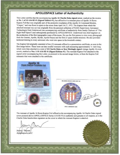 DUKE & MATTINGLY SIGNED APOLLO 16 FLOWN KAPTON COVERS